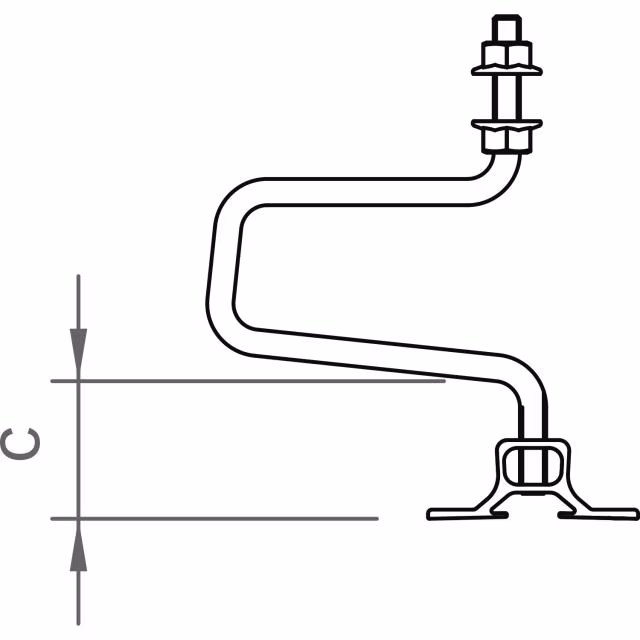 Dreifach verstellbarer Dachhaken für die Montage von C-Schienen als Fall- und Querschienen bei geringeren Lasten oder schmalen Sparren